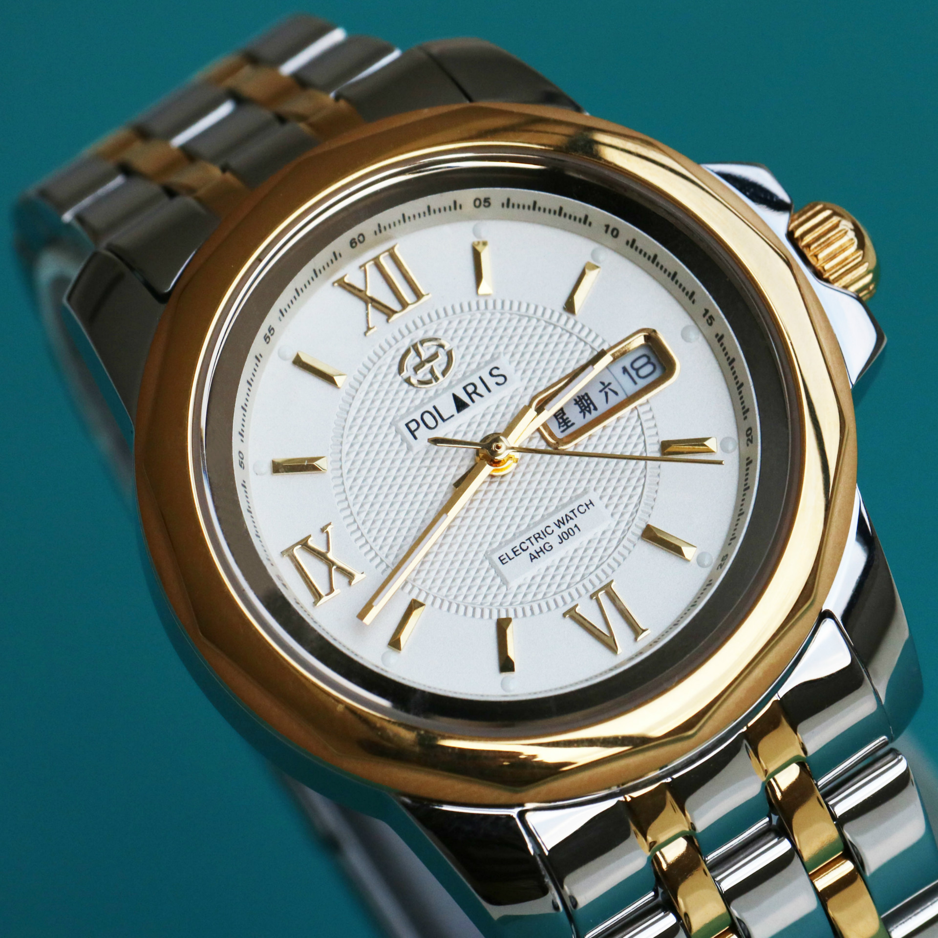 ⑵把时针调到6:00-9:00之间后,将手表调节钥匙往里推移一档(档调星期日历),由下往上拧调星期,由上往下拧调日期。