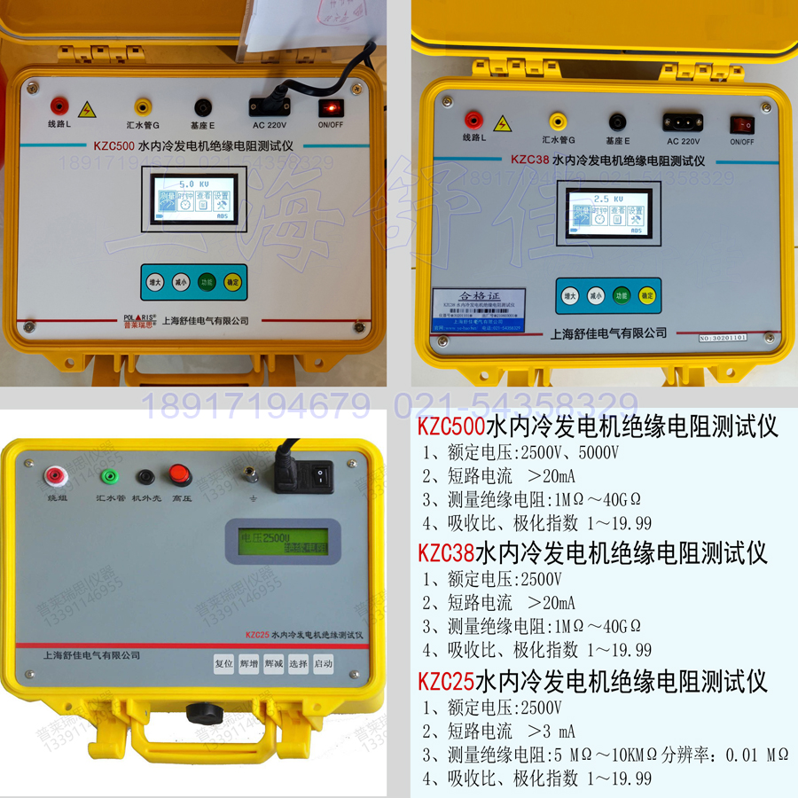 KZC500水内冷发电机绝缘电阻测试仪专用于水内冷发电机的绝缘测量试验,同时也可用于试验室或现场做其它材料的绝缘测试。