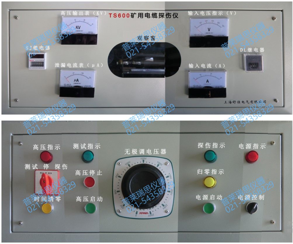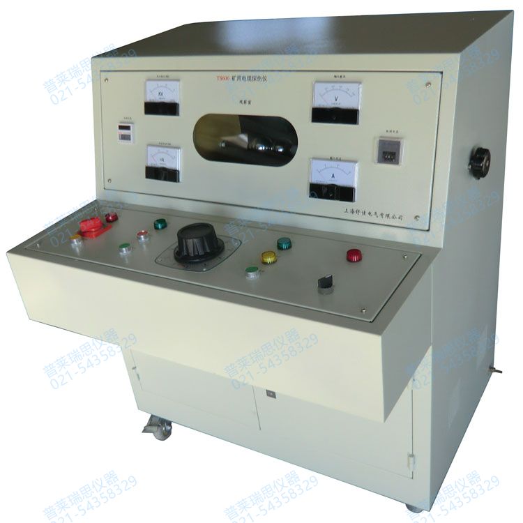 TS600 电 缆 探 伤 仪 详 细 说 明 书 一、概述及说明: 煤矿是电缆使用大户,由于井下作业条件非常严酷,所以各种电缆年损坏量比较大,为了节省开支降低成本,各煤矿一般都配备自己的电缆维修队 伍。又由于检测条件苛刻、检测设备限制,对矿用电缆探伤测试常常不尽人意,本公司依照各检测仪的优点,针对矿用电缆的要求,特设计制造了新一代 矿用电缆测试仪。本装置是以不破坏电缆原有结构为前提的局部放电法为基础进行探伤,能简单而准确地探测到电缆损伤部位,而且又兼有修复后进行测 试的功能,所以本产品是当前煤矿电缆维修业中可以充分信赖的工具。本探伤仪除主要为电缆探伤使用外,还可以作为其它电气设备的直流耐压测试之用。 本测试台具有结构简单,性能稳定,能满足矿用电气设备测试的需要。 二、电源主要技术参数: 电 压: 单相 220v,50Hz 探伤直流输出: 0—15KV 电缆探伤准确度: ±50mm 左右 测试输出电压: DC0—50KV; 高压储能电容: 12KV,1.4 μf 交流输出电压为: 0—40KV 耐压测试时间: 0—30s(可调) 泄漏电流测试: 0—300μA 高压变压器容量: 4KVA 放电球调整距离: 0—10mm 外 形: 900×850×1200 三:用途 本设备专供各类矿用 6KV 以下电缆在煤矿地面进行探伤,并在电缆修复后进行直流耐压测试和泄漏电流试验之用是按《煤矿电气试验规程》要求设 计制造,它的实用性强,具有对电缆探伤和测试的双重功能。 四:设备使用环境条件 1、周围介质温度:-5℃—+40℃ 2、空气相对湿度:≤85%; 3、海拔高度:≤2500m 周围无爆炸危险介质,并且介质中无足以腐蚀金属和破坏绝缘的气体及尘埃。 五:结构特点 为搬运方便,本机设为一体化结构,前水平面板为操作面板,斜面为仪表指示和球隙观察窗。操作面板示意图如下: http://www.ye-bao.com/a/17kuangyongyiqi/05dianlantanshangceshiyi/500.html 1.探伤时,A 点接红夹探伤输出;黒夹接探伤地,短接 BC; 2.测试时,短接 AB,红夹接 C 点,黑夹接测试地; 1、耐压测试:红夹接高压输出 C 点,黑夹接地、短接 A、B 点; 2、电缆探伤:红夹接探伤输出 A 点,黑夹接地、短接 B、C 点; 3、注意:无论探伤还是测试,外壳一定要接地,使用完毕,一定要用专用放电棒分别对 A、B、C 点进行放电 4、提示!做 DC 测试和探伤试验时一定要将试验变压器的短路杆拿出来,不然会影响机器正常工作。 本设备主要有控制部分(低压)和高压整流,放电和测试部分组成,高压部分与外壳留有足够的安全空间。 为保证人身及设备安全,高压启动必须有专人操作,接好外壳与大地的连接线; 配备了专用放电棒,在每次探伤和测试后进行放电以确保安全,放电时用放电棒分别对 A、B、点进行放电。 六: 使用说明 试验前准备: (1)在通电试验之前,一定要认真阅读本机说明书,特别是对高压输出端子的连接方式,这一点请操作人员务必注意。 (2)设备使用前外壳必须可靠接地,接地电阻不得大于 4 欧姆。 (3)试验或使用前应对设备内外仔细进行检查,保持设备尤其是高压部分端子及连接线的清洁是至关重要的。 (4)本设备最高工作的容量负载可调整并限位至 30KV。 (5)设备搬动在避免剧烈震动,设备搬动后必须静放一小时后方可使用。 (6)高压表刻度是按容性负载 0.01μF 时检定的。 (7)将放电棒安装妥当后,其接地端子与箱体接地螺栓用螺钉固定,并安放于箱体底部。 2、电缆探伤及耐压测试: (1)高压侧的直流微安表只为直流泄漏电流的测量,作交流耐压或对电缆探伤时,一定要将微安表头两端(控制箱短路保护 线)可靠短接,使表头退出。 (2)对电缆进行探伤时,升压速度要缓慢,球隙的距离应从小至大调节,球隙与球隙之间的最大距离不要超过 5 毫米,放电 电压不要超过 12KV。 (3)若遇电缆的故障点靠近在试验端时,这时故障点的放电声可能被球隙的放点声所掩盖,此时应将试验换至电缆的另一端 进行测试,即便于查找。 (4)当每次试验完毕,应先按下停止按键调压器将自动回零,切断电源并用放电棒对试品充分放电,若在试验中出现异常,亦应照此办理。 (5)在规定时间内不发生击穿或闪烁为合格。 (6)在试验耐压的周期内,可在微安表上读出此时电缆泄漏电流值,一般为 0—50 μ A 为好,并且试验电压为原电缆工作电压 3—5 倍。 (7)调换其他芯线重复以上步骤,直到整条电缆测试完毕。 3、使用后应注意事项: (1)每次试验后应即关掉 OK 电源控制开关,并用放电棒对试件及高压部分各处充分放电。 (2)每天下班前应将外部电源总闸(容量不小于 50A)切断,并将机内 ZK 开关断开。 七: 操作注意事项: l、电缆故障探伤操作举例: 假设故障现象为电缆——相对的绝缘损伤,接线原理见图三 接好试验线路,尤其是接地线一定要可靠接地。打开控制柜里面的空开,此时电压表指示 220V 电源指示灯亮,按下电源起动按钮 15, 将放电球隙调至 1-5 毫米之间 按住升压按钮,缓慢升压至球隙放电。注意:只有当小间隙放电不能烧穿故障点时,再调大球隙。有时要进行多次反复放电,才能找出故障点。正 常情况下,一般调至 2—3 毫米之间,兆欧表量出阻值在 0.1MΩ左右,若兆欧表量出阻值大于 1MΩ而小于 2MΩ时,应将间隙调 小,此时一般不易放电而是连续的放电线。 2、设备使用前应铺上绝缘胶板垫。 3、操作员应绝缘胶鞋,戴绝缘手套。 4、被试电缆芯线应与高压接线柱用铜螺母牢靠接地固定,保持良好 接触,避免尖端放电引起漏电及电流增大。 5、工作现