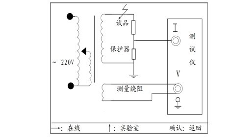 本方法需配可调交流高压电源,电压信号输入接到试验变压器的测量仪表端,氧化锌避雷器一端接高压,另一端经一保护器接地,与仪器的地联接。交流电流信号输入端接保护器上端。