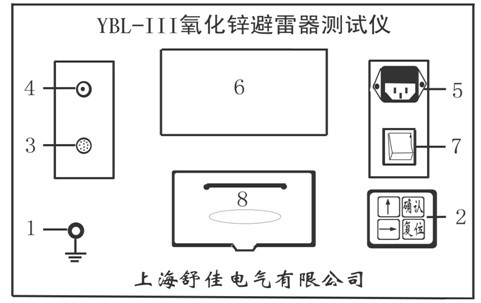 1、安全接地端;2、操作键盘;3、电压信号输入端;4、电流信号输入端;5、电源插座;6、大屏幕液晶;7、电源开关;8、TPμρ40微型打印机;