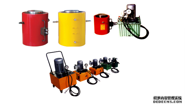 超高压电动千斤顶:具有输出力大、重量轻、远距离操作的特点,配以本厂的超高压油泵站,可实现顶、推、拉、挤压等多种形式的作业,广泛应用于交通、铁路、桥梁、造船等各行各业,近年来又在基础沉降试验及静力压桩中得到了广泛的应用。